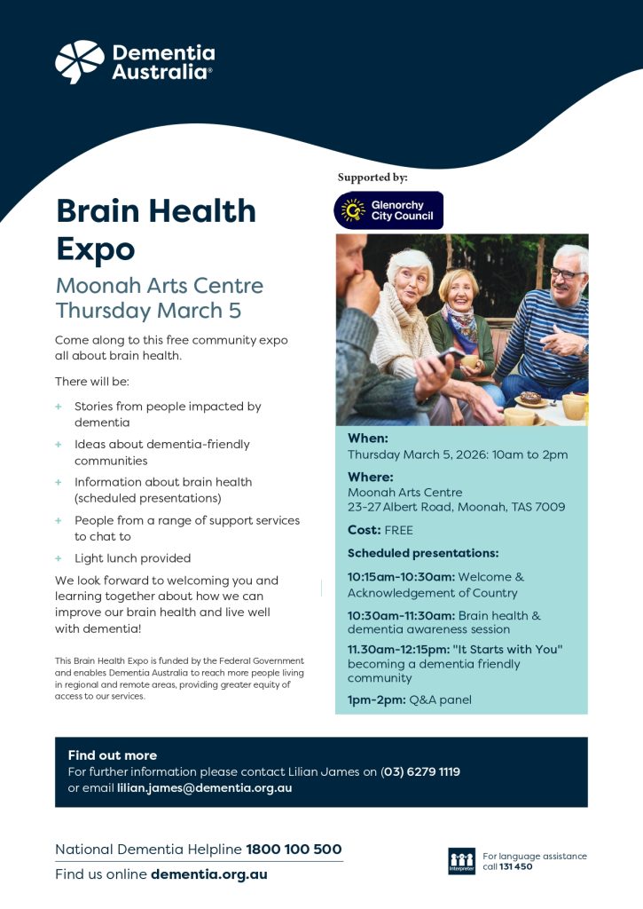 If you have any questions regarding this Brain Hub or the events that are running as part of it, please contact Lilian James on (03) 6279 1119 or email lilian.james@dementia.org.au