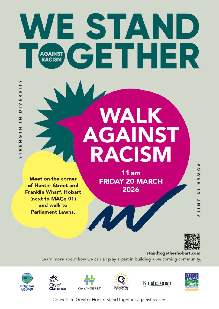 To learn more about how we can all play a part in building a welcoming community visit www.standtogetherhobart.com.